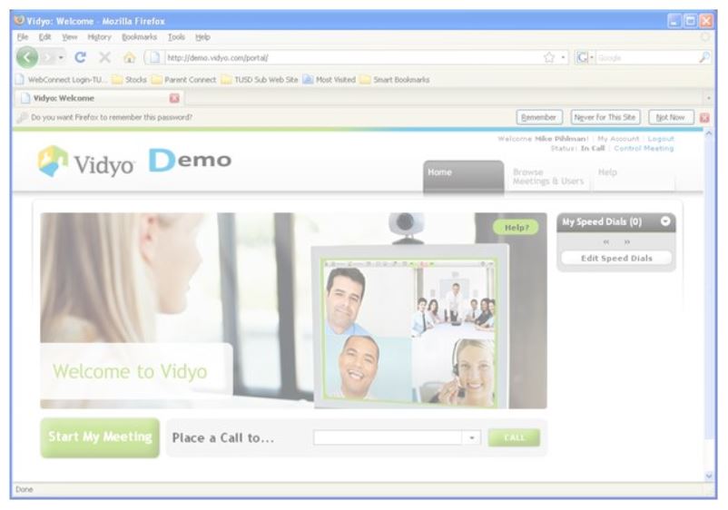 Once completed, ths following screen came up. This is the main screen from the VidyoPortal where participants can find other participants or rooms and make the calls.