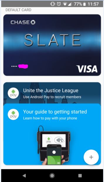 The process of activating Android Pay using that credit card was super easy from the Google side, but, VERY, difficult from the Chase side.