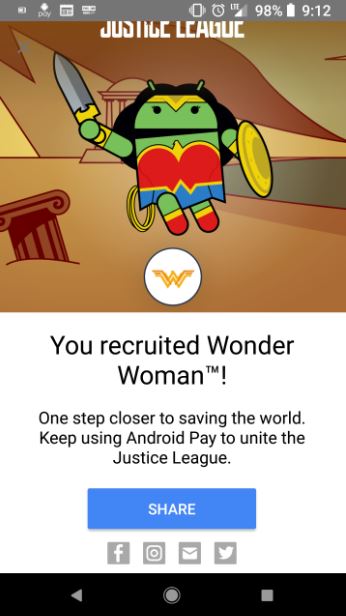 Oh well, you know the rest, and now that I have officially used Android Pay for the first time…..I will soon be able to save the world with my Justice League friends, starting with Wonder Woman!