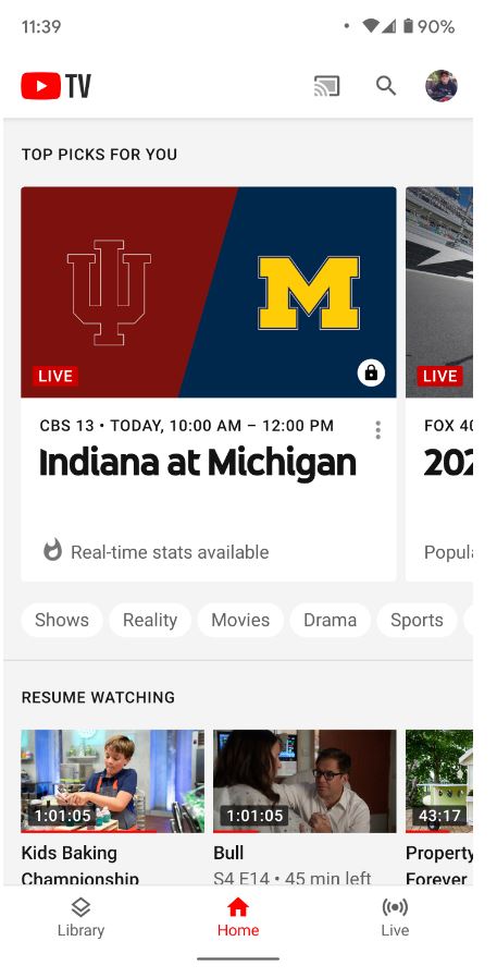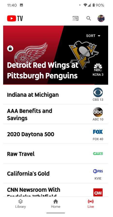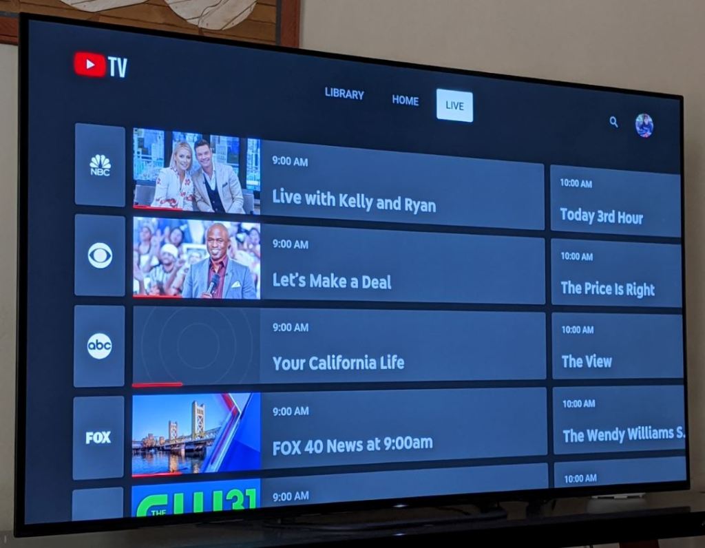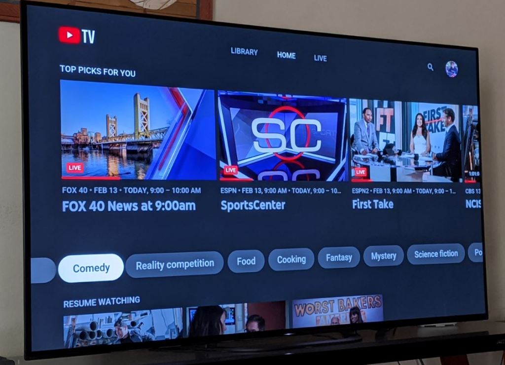 After turning on the app, Youtube TV presents a home screen that gives you some options to choose from at the time you turn on your TV. In the morning, I get the Sacramento Fox 40 News suggestion that I can just click into and watch for a few minutes. See figure 1 below. Very nice.