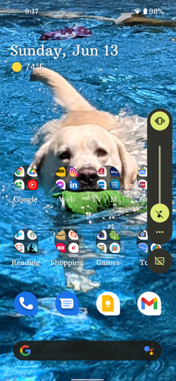 I changed the default matrix on the Pixel 5 to 4 x 4 that came with the added benefit of larger fonts and icons. You can also see the new volume controls that pop up when you move the volume button up or down. Pretty cool that you can control what you want to do from those sliders.