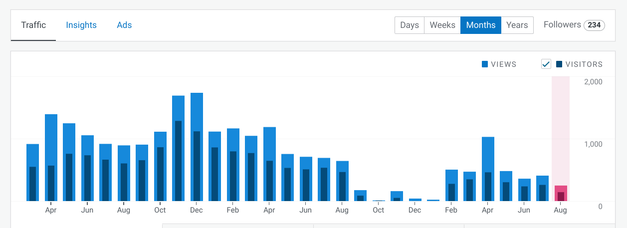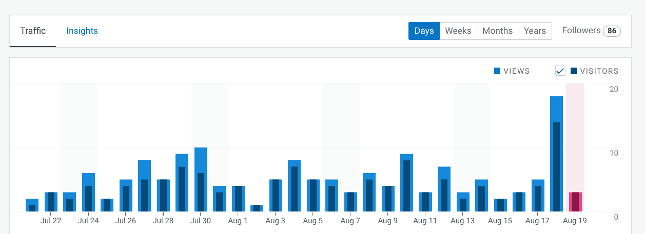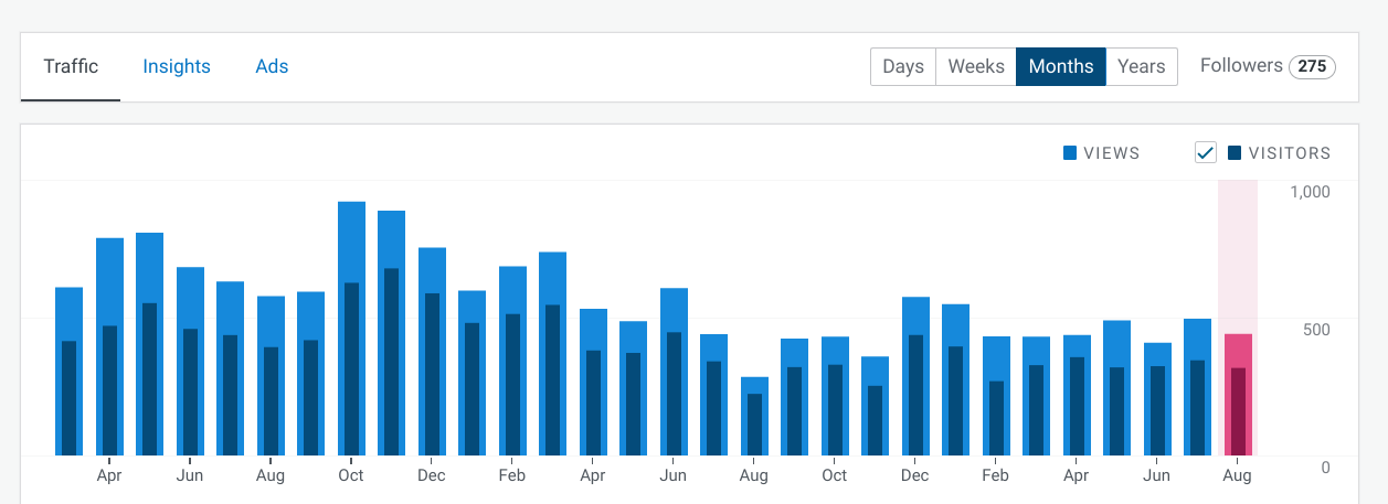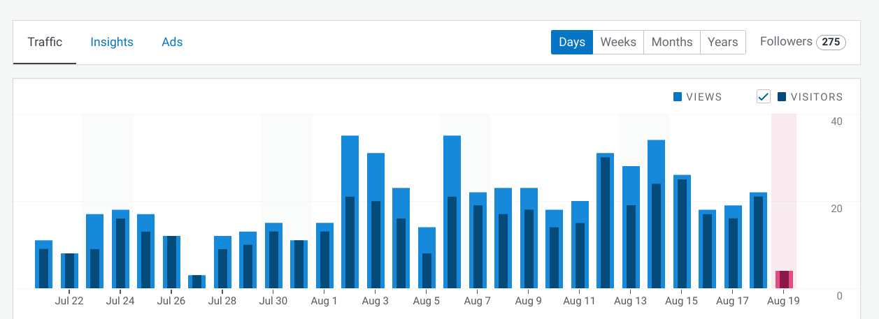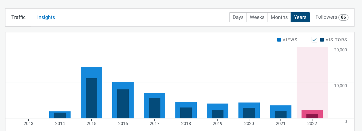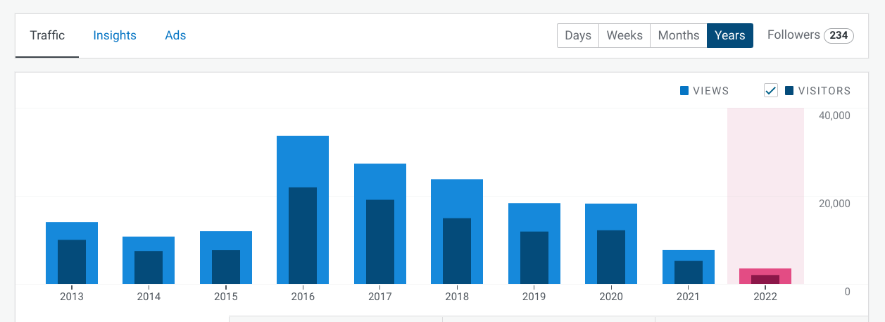 Update August 29, 2022: Daily traffic is too granular to track. BUT…..weekly traffic is better, and if I am patient, monthly and yearly would be even better.