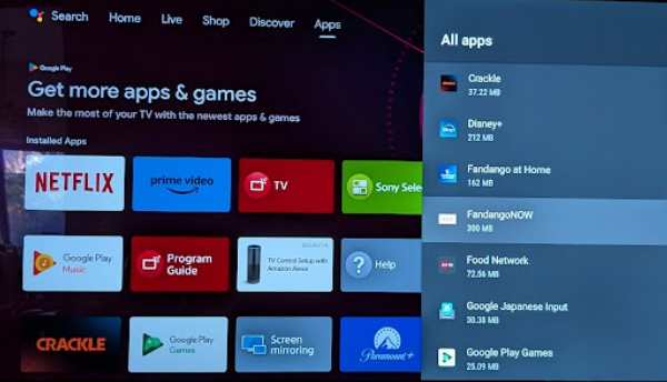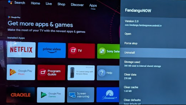 Here is a step by step how-to to trash an app on the Sony A8G (Notice that I picked Fandango to “trash” as Discovery+ was already GONE. 🙂